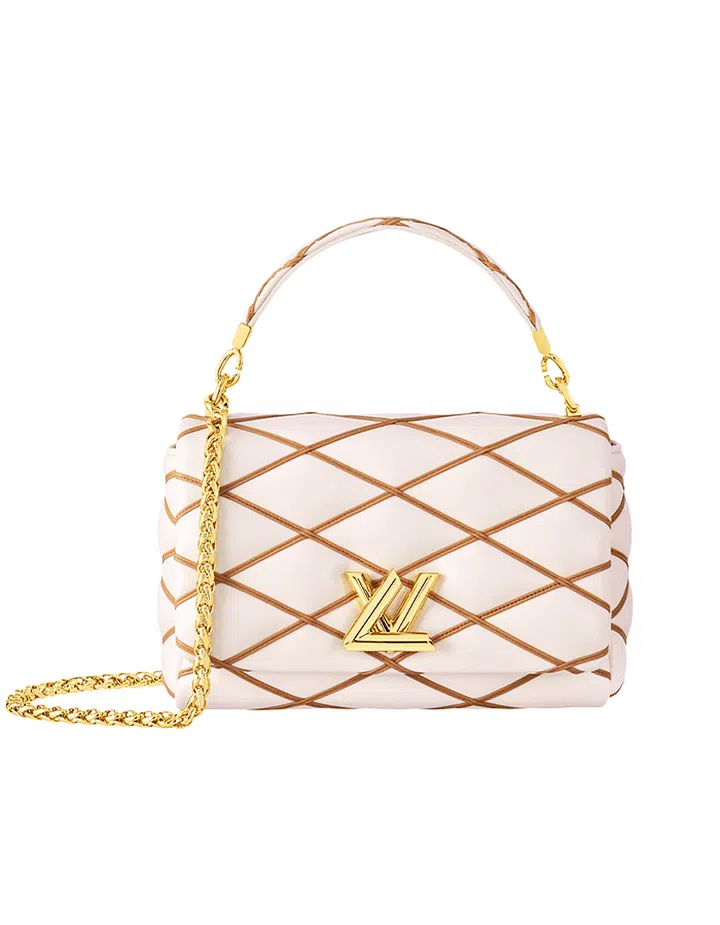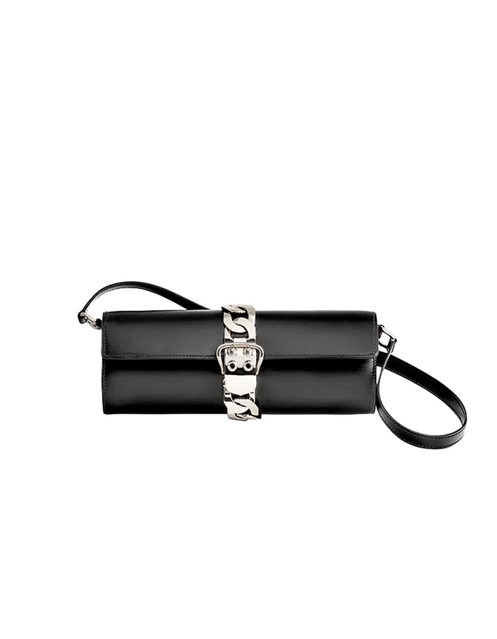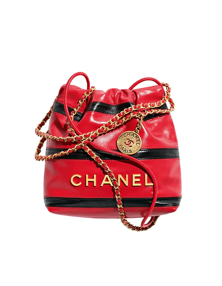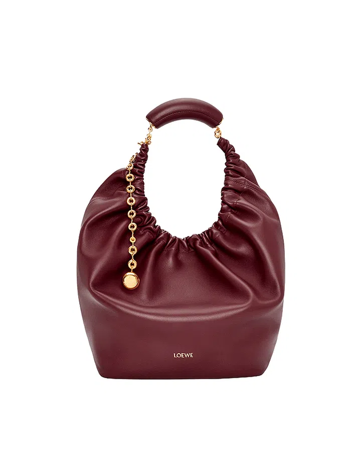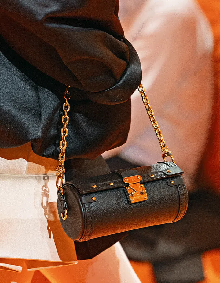 Whether it’s a charm, chain, or both, as seen on the Chanel 22 handbag, it appears that designers are considering handbags as an extension of the jewellery category. A prime example is Loewe’s Squeeze bag, which returned for another season in new colours, and now features the addition of a gold chain dangling from the handle. Also, metallic hardware in the form of thick chain slings was a prominent feature at Givenchy and Louis Vuitton.