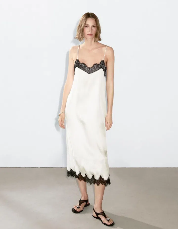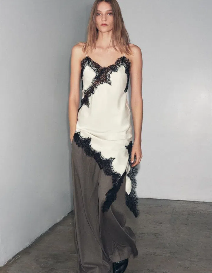 A textured lace skirt brings vintage femininity, while this season’s trending clogs add a cheeky, modern twist. It’s lace with personality — equal parts playful, polished, and perfectly unpredictable.