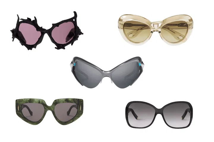 Oversized, bug-shaped sunnies are having a major moment thanks to Loewe, Prada and Balenciaga. The quirkier and larger, the better.