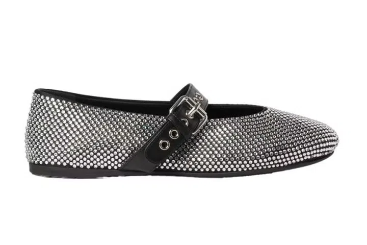 Satin Mary Janes with crystal, $2,550, Miu Miu