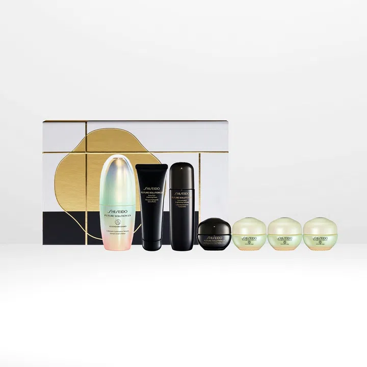 Fans of the Future Solution LX range have even more to look forward to this season. The Future Solution LX Legendary Enmei Ultimate Luminance Set ($690, worth $1,169) offers a comprehensive skincare ritual featuring the Intensive Firming Brilliance Serum, Eye and Lip Contour Regenerating Cream, and Universal Defence SPF, a complete rotation that lifts, firms and protects for visibly youthful, resilient skin.