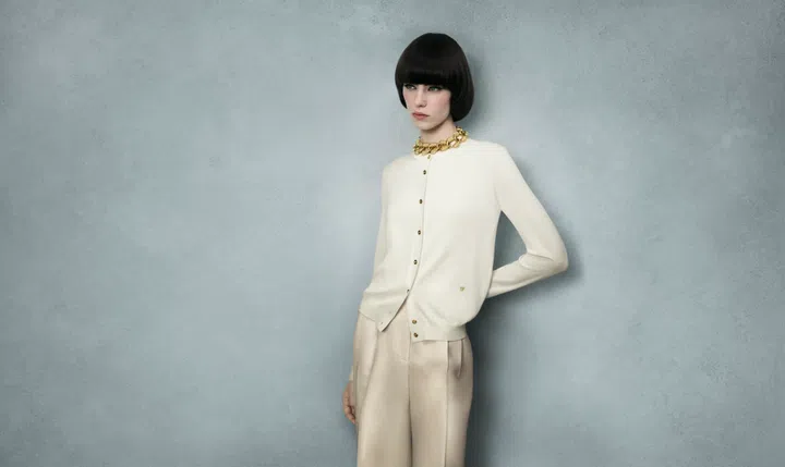 Steering away from festive reds and snakes, Tom Ford’s Chinese New Year 2025 collection takes a more reserved yet elegant approach, featuring an ivory men’s polo shirt with mother-of-pearl buttons and a women’s knit tank top with cardigan set adorned with metallic buttons, both crafted in cashmere and silk with gold embroidered logos.