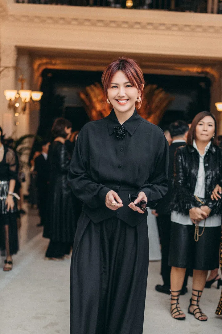 Ah Jie shone in a chic chin-length bob with blunt bangs. She kept her makeup fresh and natural, pairing a soft petal-pink lip with inky lashes that perfectly framed her eyes.