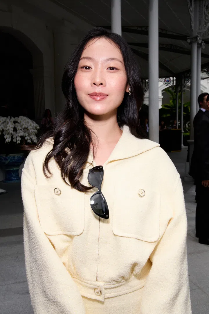 The local actress and daughter of entertainers Tan Kheng Hua and Lim Yu-Beng, is a regular fan of the “no makeup” makeup look. She paired a luminous complexion with glossy, lacquered lips and a subtle flush on her cheeks. Her eyes remained effortlessly natural, with just a few swipes of mascara and a light dusting of neutral eyeshadow.