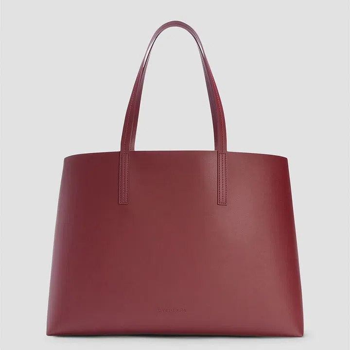 Everlane‘s Italian leather tote in brandy is a contemporary update on the classic tote without the harmful materials. Made with a Bio-Alloy™ and Bio-PU leather alternative from plant-based proteins, this bag is expertly crafted to feel like “leather”, but with a lower environmental footprint.