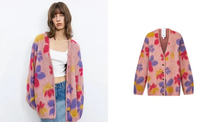 - 8. Louloudia Floral Jacquard Knit Cardigan in Merino Mohair Blend, $439, Fabrique