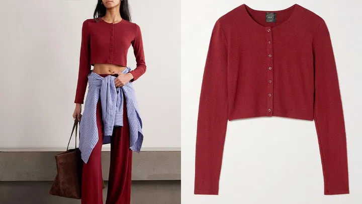 At this point, a red cardigan is a wardrobe essential. It has the power to instantly elevate even the simplest outfit, making you look effortlessly chic. Take this red cropped cardigan from LESET, for example. It’s brushed for a soft, cosy feel and finished with tonal buttons down the front. Wear it with a classic white tank and jeans for an easy everyday look, or layer it over your outfit for something a little more polished.