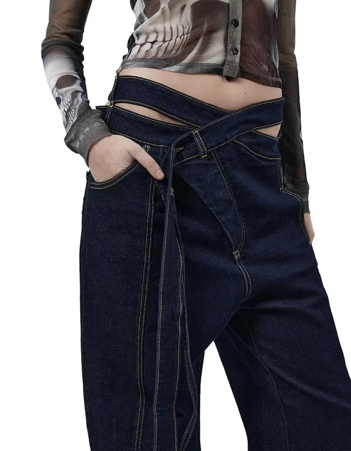 While denim jeans have proven themselves to be a timeless wardrobe staple, switch it up with these wide-cut twisted jeans by Ottolinger, featuring hip cutouts, an exaggerated denim belt, and plenty of pockets for your knick-knacks.