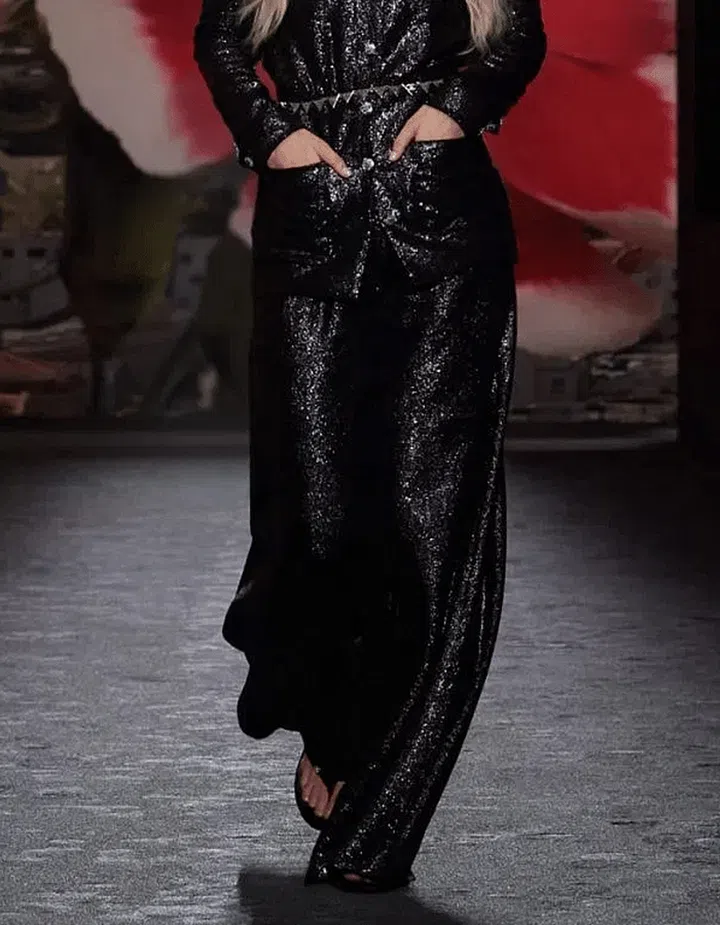 Debuting on none other than Gigi Hadid at Chanel’s S/S’24 show, these pants offer a playful twist on the classic black trouser silhouette, infused with plenty of extra glimmer.