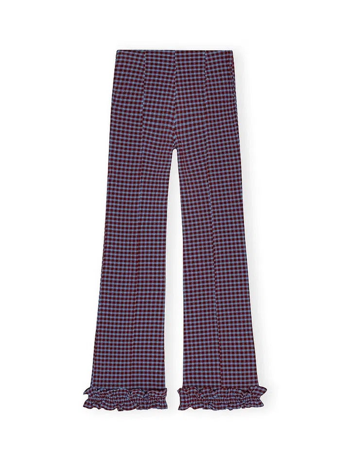 If you’re tired of plain tops stealing the spotlight, strut your stuff in these fabulous chequered trousers by Ganni, complete with frilly ankle hems for an added splash of flair.