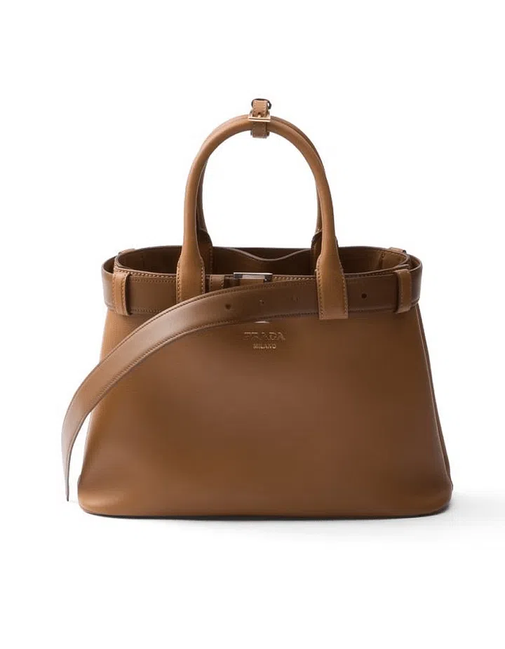 This handbag is based on a design created by Miuccia Prada’s grandfather, Mario, in 1913. Credit: Prada