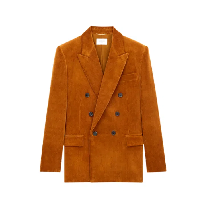 “Corduroy is having a moment, and the brown blazer is leading the charge. I would style it with a classic white tee and wide-leg denims.”