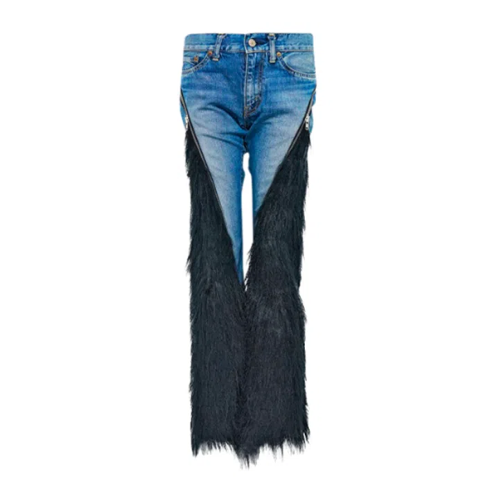 Levi’s x Junya Watanabe cotton denim acrylic faux fur jeans, $1,550.46, Junya Watanabe at Club21.com