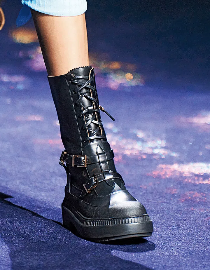 The obsession with oversized bags is not losing steam, and one of the most talked-about accessories is Loewe's Puzzle bag. We especially love how creative director J.W Anderson paired the oversized Puzzle with a pair of slouchy boots. Other designs to consider include lace-up boots, as seen at Dior or the buckled styles at Max Mara and Chloe.