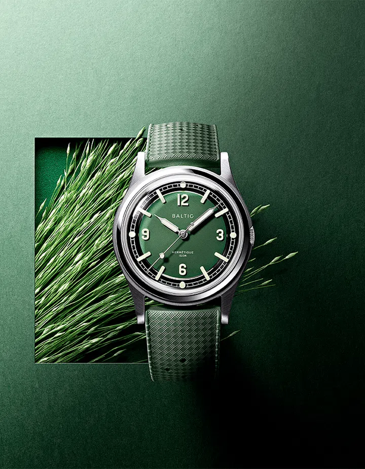 Founded by Frenchman Etienne Malec, who inherited his love for watches from his father, Baltic is known for its three-pronged approach: quality mechanics, a neo-vintage design aesthetic, and affordability. The Hermetique, featured here, is a 37mm timepiece built to endure our daily vagaries with its 150m water resistance, double domed sapphire glass, Super-Luminova hands and numerals, and vulcanised rubber straps.