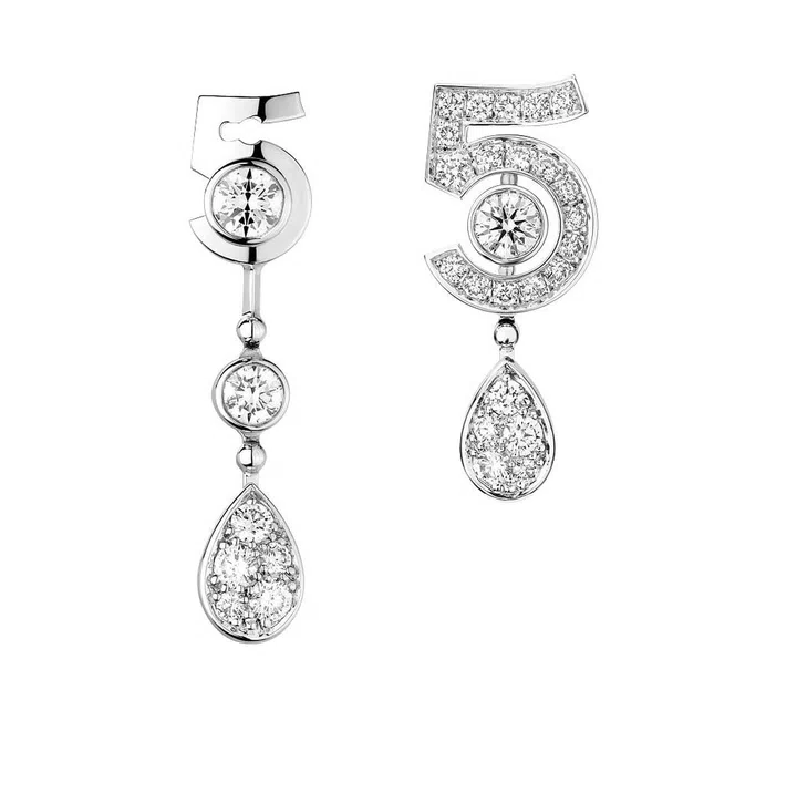 Our favourite: the Eternal No. 5 transformable earrings ($15,350). One side features a number 5, while the other has a detachable drop-shaped diamond that can be attached behind the ear lobe, or removed to leave a simple round diamond stud.