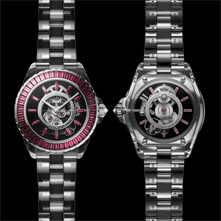 The new J12 is a follow-up on the J12 X-Ray model that was launched in 2020 to mark the 20th anniversary of the ceramic round watch. Focusing on the concept of transparency, the J12 X-ray featured a case and bracelet made from crystal sapphire, complete with plenty of baguette-cut diamonds.