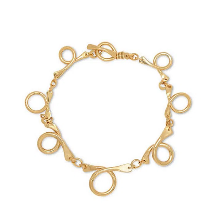 Constructed from gold-plated brass shaped in organic loops, this contemporary design offers a more polished take on the trend.