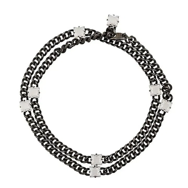 Bedecked with square-cut crystals which draws out the toughness of the design, this simple yet striking necklace will look incredible when teamed with a sexy Little Black Dress, or even while coordinated with a suit jacket so it doesn’t look too stiff.