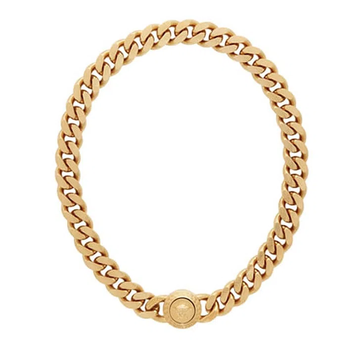 When we think of the brand Versace, it’s pretty telling that the first thing that comes to mind is decadent gold statement jewellery. So it goes without saying that we had to include the gold “Tribute” necklace in our line-up.