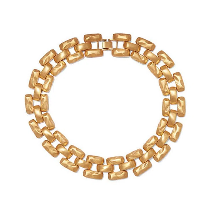 Made from stacked oversized links that are shaped like the geometric rectangular links on most classic timepieces, this gold-tone necklace offers the look of a layered necklace without the hassle that comes with throwing multiple necklaces on in the morning.