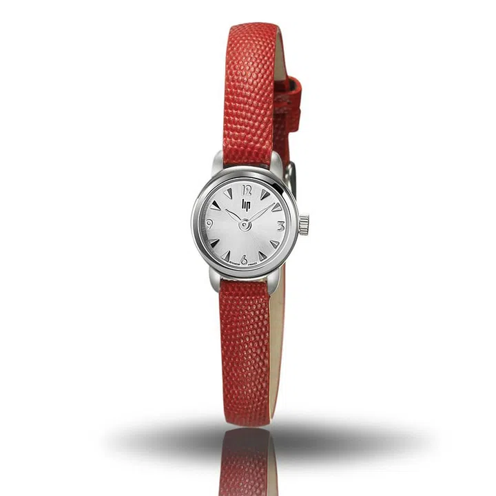 This Lip watch has a deep red leather strap that goes perfectly with Asian skin tones. Donning a petite physique, this watch would suit you well if you have a slim wrist – the strap is 8mm wide and the polished steel case has a diameter of 18.5mm.