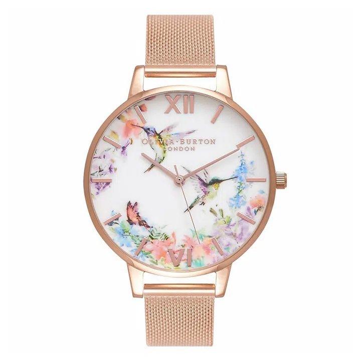 Unlike the other pieces, this watch’s mesmerising colours lie in its dial, which dons a picturesque painting of flowers, hummingbirds and a butterfly. Straight out of a countryside novel.