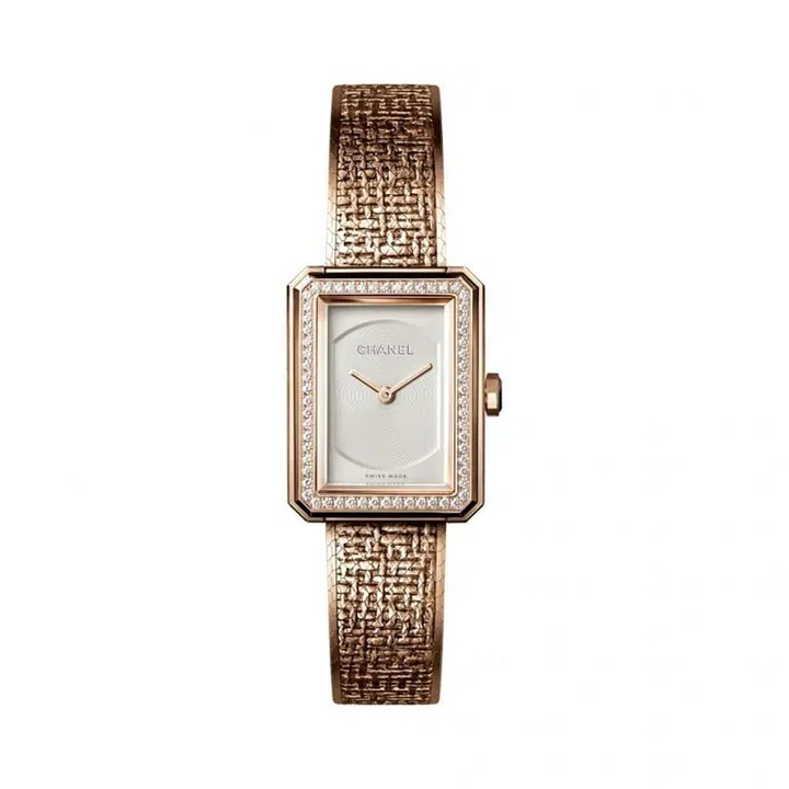 Boy.Friend Tweed 18K beige gold watch with diamonds on matching bracelet, $56,150, Chanel Watches & Fine Jewellery Boutique