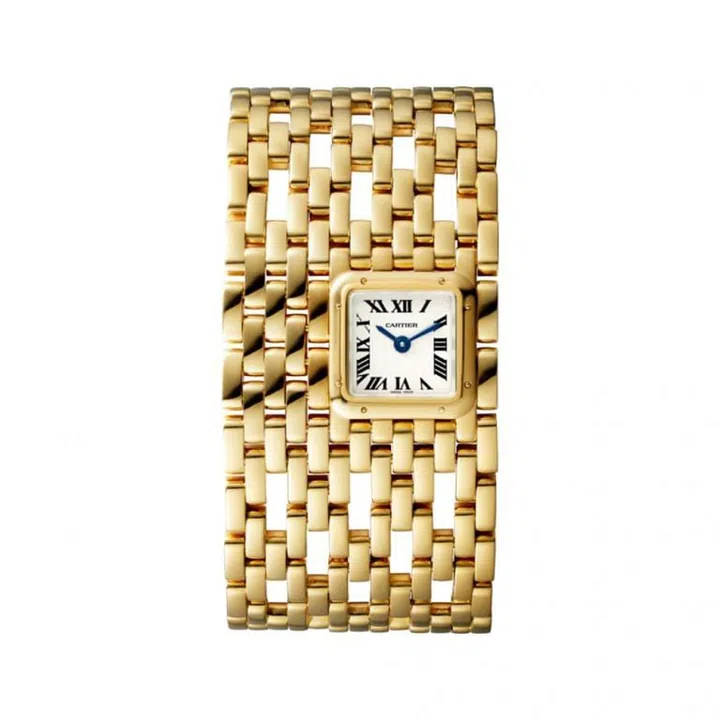 Resurrected from Cartier’s 1983 archives, the Panthere de Cartier is remade into a contemporary jewellery piece that features a 22mm watch case embedded into a cuff made up of chain links.