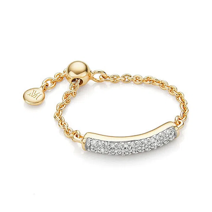 Sporting a chain instead of a solid band and a small, sliding ball that allows you to adjust up to size T, this is definitely no ordinary ring. We love that the piece is elevated with the inclusion of 40 set pavé diamonds totalling 0.13 carats. Gift it to a friend or stack a few for a quirky effect.