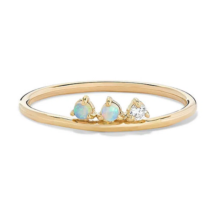 Upgrade your typical gold bands with this Wwake creation that comes studded with iridescent opals and a diamond totalling 0.09 carats. Let this ring shine by pairing it with darker outfits such as a navy jumpsuit and mules.