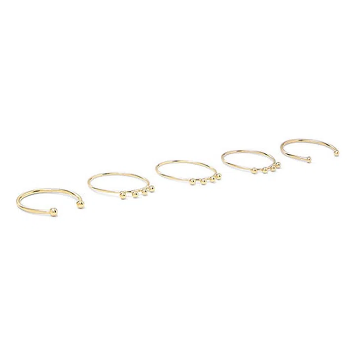 Whether you choose to wear them individually or in a complete set of five, this Isabel Marant set is both chic and value for money. The tiny balls act as unique accents to the simple gold-tone brass band/cuff ring design. We reckon that these would look good with a feminine white lace dress.