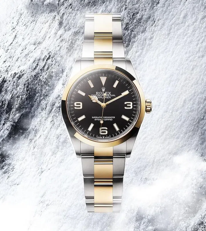 For those looking for a refined sports watch, there’s the Explorer, which is now available in a Rolesor edition (or what Rolex calls its gold- and-steel watches) for the very first time. With a black, lacquered dial graced with hour markers and hands coated in the brand’s exclusive Chromalight for improved luminescence, it comes equipped with an automatic movement that was launched just last year for greater precision and reliability, and has an improved power reserve and resistance to shocks and magnetic fields. Now that it has reverted to the original 36mm size of its 1953 launch, its polished sports-luxe looks make it a strong contender for people with smaller wrists.
