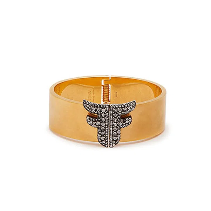 Fendi refashions this cuff with a iconic double F logo and a rock ‘n’ roll edge by introducing contemporary curves and embellishing it with crystals. Let this gorgeous piece elevate your monochromatic ensemble, or a neutral coloured (we’re thinking beige) two-piece pant suit.