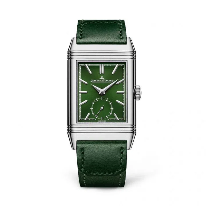 Jaeger-LeCoultre’s Reverso Tribute Small Seconds Green stainless steel on leather strap