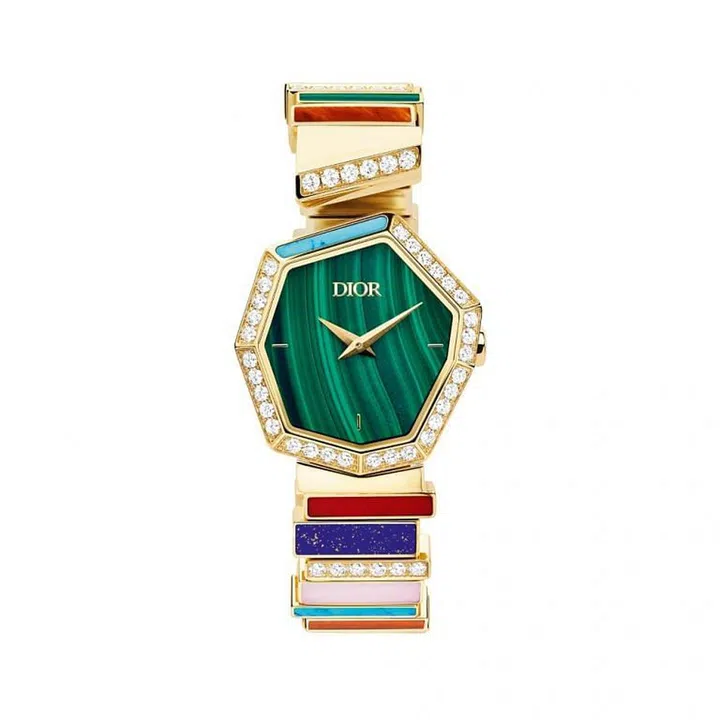 Dior’s Gem Dior 18K yellow gold with diamonds, malachite, lapis lazuli, onyx, carnelian, tiger eye, aragonite and turquoise