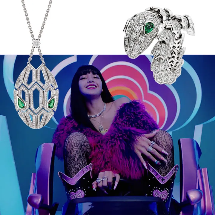 Lisa deftly uses her accessories to transform her look. She flashes her ice lollipop-rings when she is dressed in a cool street style, and puts on the Bvlgari Bvlgari necklace for a sweet look. When she raps, her plush purple fur coat and Bvlgari’s classic Serpenti jewellery give off a hip hop vibe.