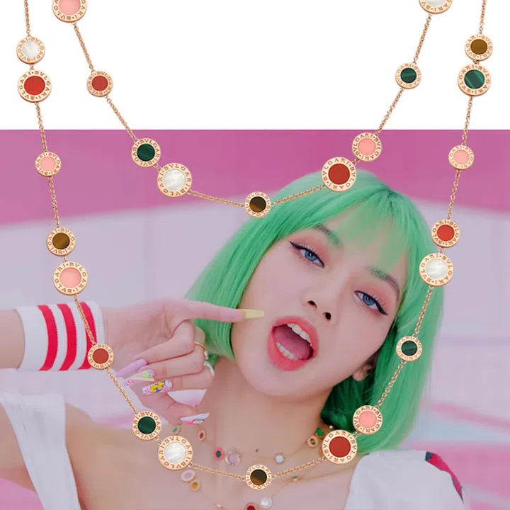 We are impressed by Blackpink's ability to pull off wearing luxurious high-end jewellery while dressed in sweet and girly styles. Take your fashion cue from Lisa and put on a colourful and dainty necklace like this Bvlgari necklace. It’s like wearing pieces of candy around your neck, and is great for a cute and youthful look.