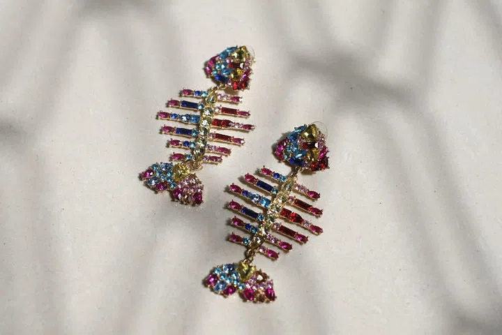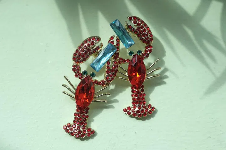 This pair of lobster-shaped crystal drop earrings are dubbed Ah Beng.