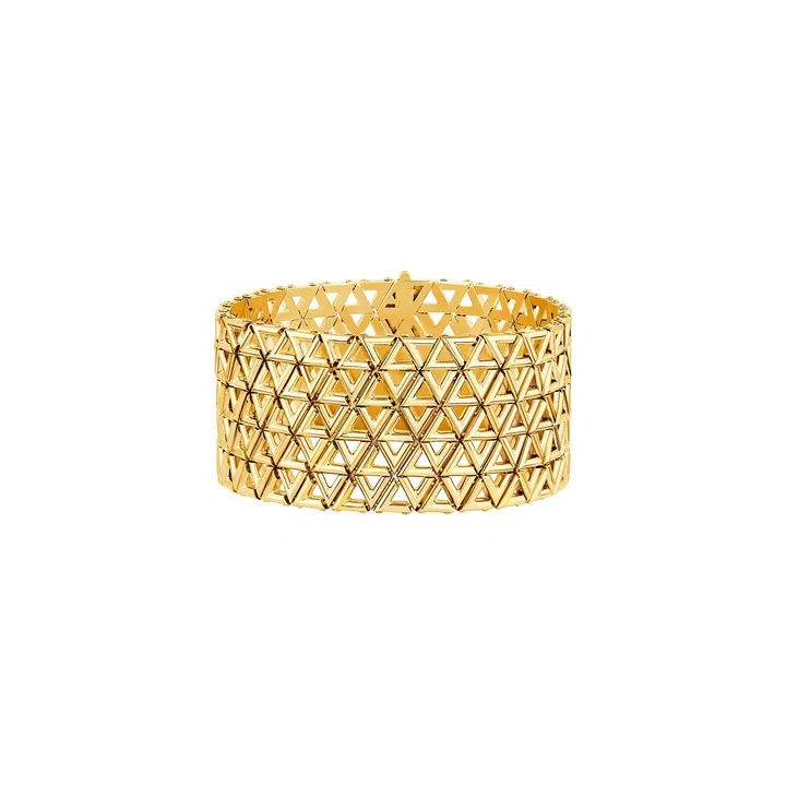 Cue LV Volt, Louis Vuitton’s latest unisex fine jewellery collection, which plays with the French maison’s initials. Jewellery artistic director Francesca Amfitheatrof places the emphasis on the capitalised L and V. Known for her minimalist ethos, it’s no surprise that clean, sleek lines, imbued with architectural influences, are evident in the rings, cuffs, earrings and necklaces.