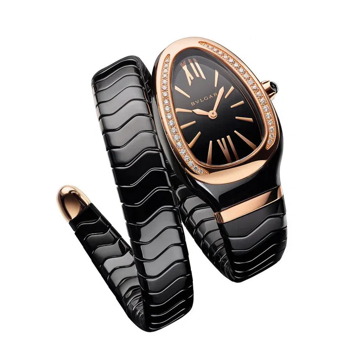 Featured: Serpenti black ceramic, rose gold and diamond watch, Bvlgari