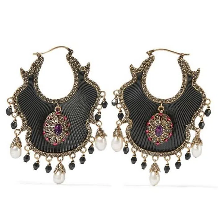 Alexander McQueen gold-plated Swarovski crystal and pearl earrings, US$520 from The OUTNET.