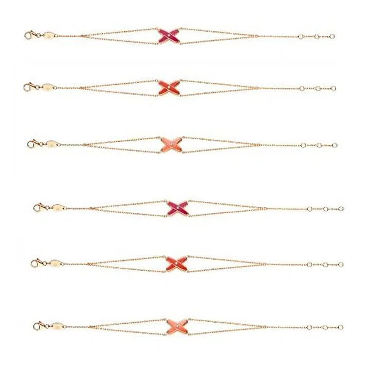 Jeux de Liens bracelet in tyrian pink / red / orange lacquer, $1,830 from Chaumet.