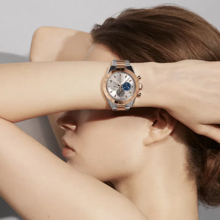 If you’ve been seeking a sporty-luxe piece, then this is the one for you. The year that it was introduced, this watch was awarded the Grand Prix d’Horlogerie de Genève 2021 “Chronograph” prize, adding yet another accolade to the already storied tale of El Primero. Launched in 1969, it was the world’s first high-frequency, fully integrated, automatic chronograph calibre (its name means “the first” in Spanish) and in 2010, it was the first automatic movement capable of measuring and displaying 1/10th of second. This year sees Zenith releasing its revered chronograph in three new versions: The 41mm Chronomaster Sport now comes in rose gold with a black or white dial; a “two-tone” steel and rose gold version; and a boutique edition in steel with an engraved ceramic bezel coloured with the El Primero’s signature colours of grey, anthracite and blue.