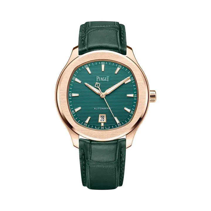 The Piaget Polo collection is now fairly established in the watchmaker’s landscape. And while it has been unveiled in several variations, this year, Piaget has also added new green editions to its lineup with the new green Piaget Polo Skeleton and the new green-and-gold Piaget Polo Date. Zooming in on the latter, the latest green Piaget Polo Date is in fact, the third Polo Date to be added to the collection, following two previous green limited editions in steel of the Piaget Polo Date, one with silvered markers and hands and one with gold markers and hands. Encased in 18k rose gold, the new model still boasts a 42mm x 9.4mm case that remains identical in design and finishing, and it’s still water-resistant to 100 metres. On top of that, the textured dial still has the same metallic and deep green colour as previous steel limited editions, and now has gold-coloured hands and markers that are both filled with Super-LumiNova.