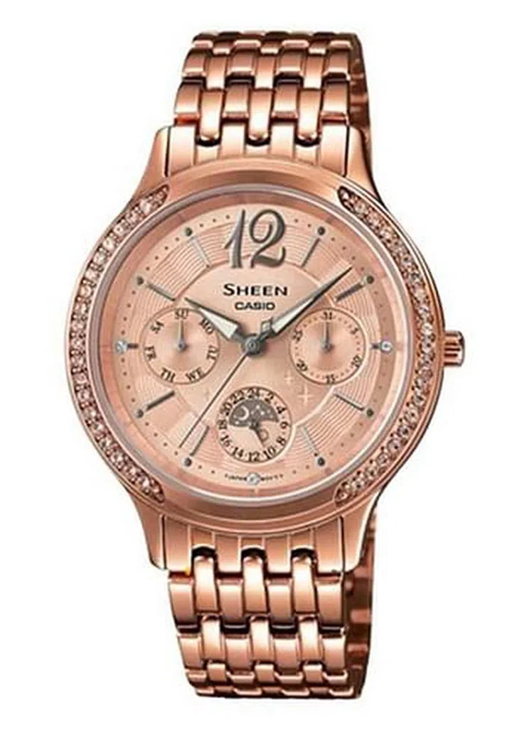 This watch still has a hint of feminism with its elegant rose-gold stainless steel strap with a beautiful design and multiple dials.