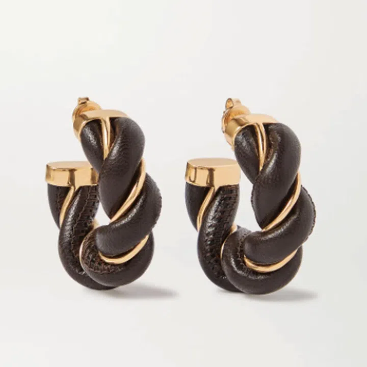 Can't decide between leather and metal? Why not have the best of both worlds with this pair of hoop earrings from Bottega Veneta.