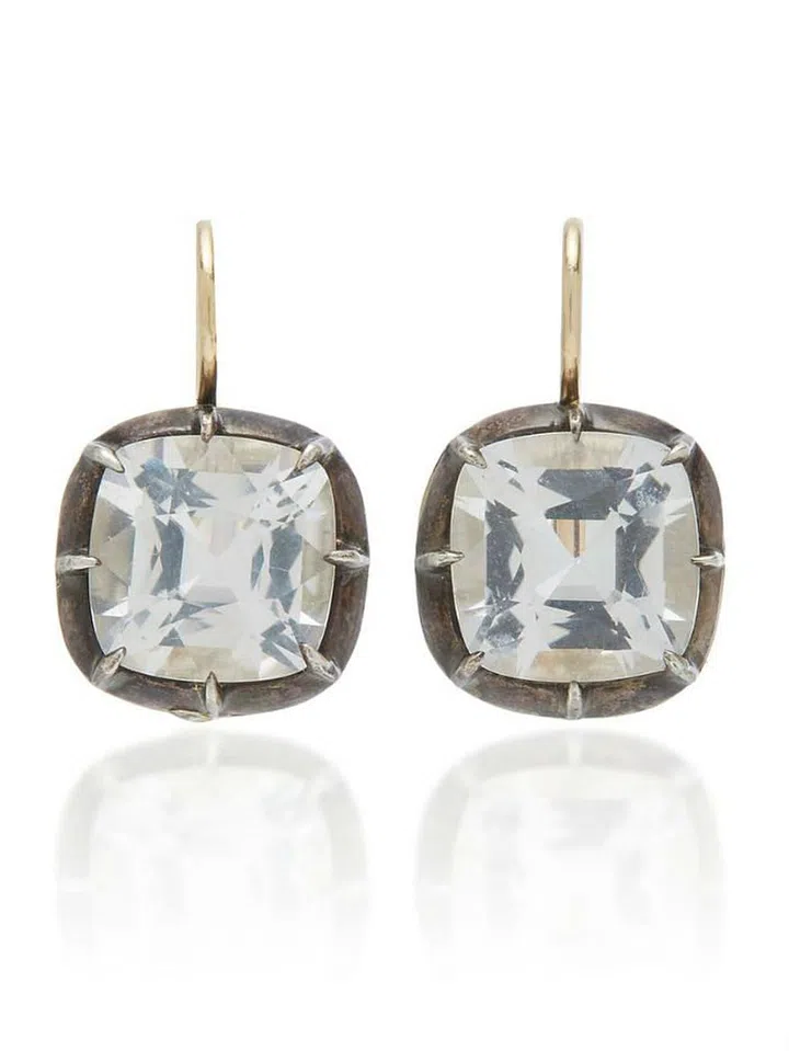 Pictured: Cushion Cut White Topaz Collet Drop Earrings