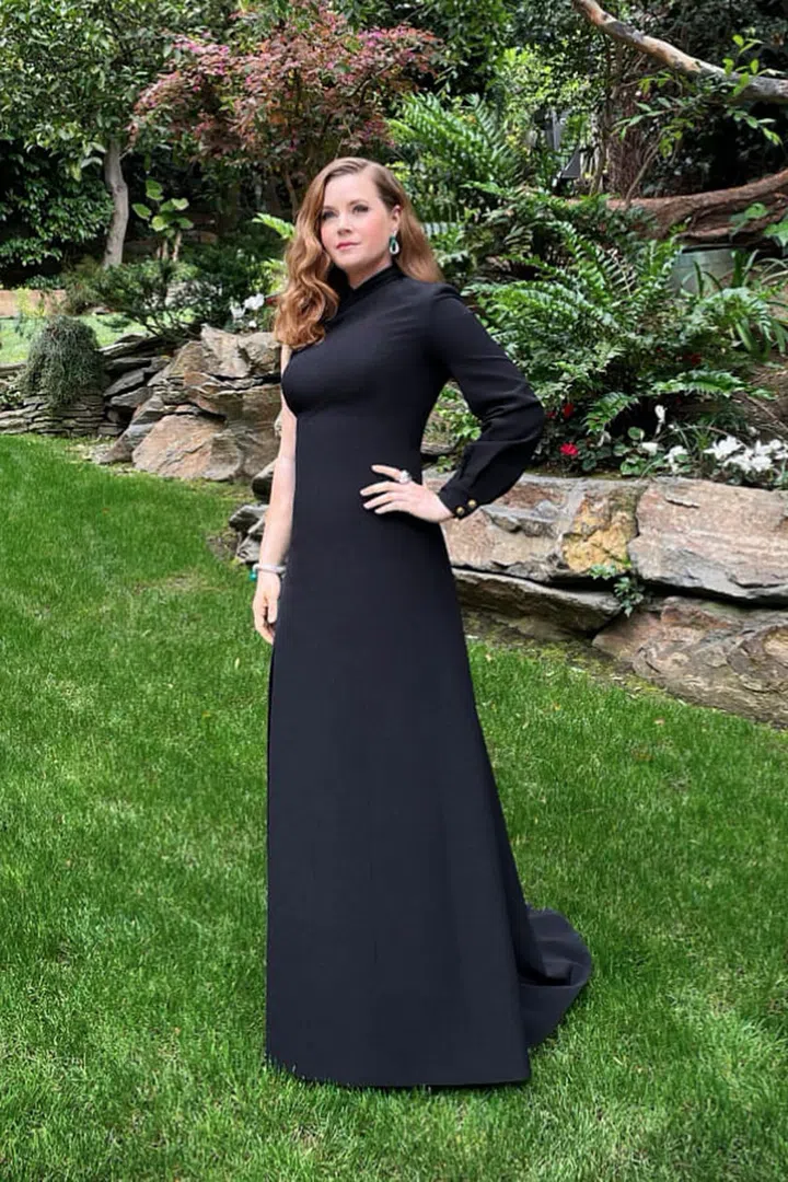 American actress and producer, Amy Adams, keeps it classy in a long, black dress by Celine. And what's great about this versatile piece is that it goes well with anything. And in this case, Amy Adams, pairs her outfit with must-haves from Cartier which includes the Cartier High Jewelry earrings, bracelet and ring.