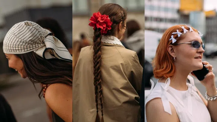 Oversized hair accessories stole the spotlight at Copenhagen Fashion Week, proving they’re the ultimate finishing touch to any outfit. Scandi style girls revived ’90s staples — from scrunchies to bandanas — styling them on braids, buns, and even along the hairline. Festival-ready crochet bandanas also made a comeback, blending playful nostalgia with modern street style.
